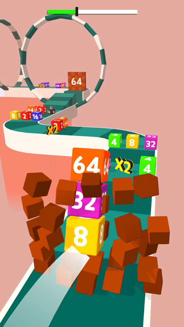 2、玩家可以收集沿途出现的数字方块,通过持续合并操作使数字立方体的体积不断增长。