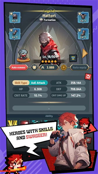 拥有种类繁多的英雄角色与装备选项,鼓励玩家尝试多种不同的战斗策略与角色搭配组合;