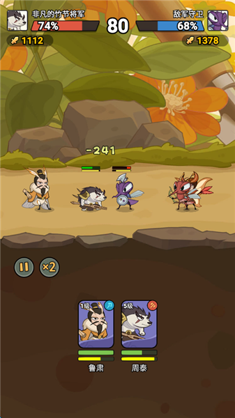 6、进行远近搭配,游戏中的战斗使用击退效果的,当敌人远程攻击较多,可以尝试提升前排肉度和后排输出,因为极兔效果,前排武将可能无法靠近敌人。