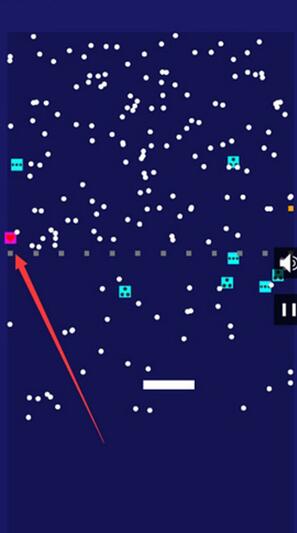 1、玩这个游戏的时候,玩家需要操控一个横条去使小白球反弹从而毁灭一块块砖块,那么怎么才可以把所有的方块打完呢?技巧在于把小白球打到两排方块的中间,会使它掉不下来,会一直在上面反弹!