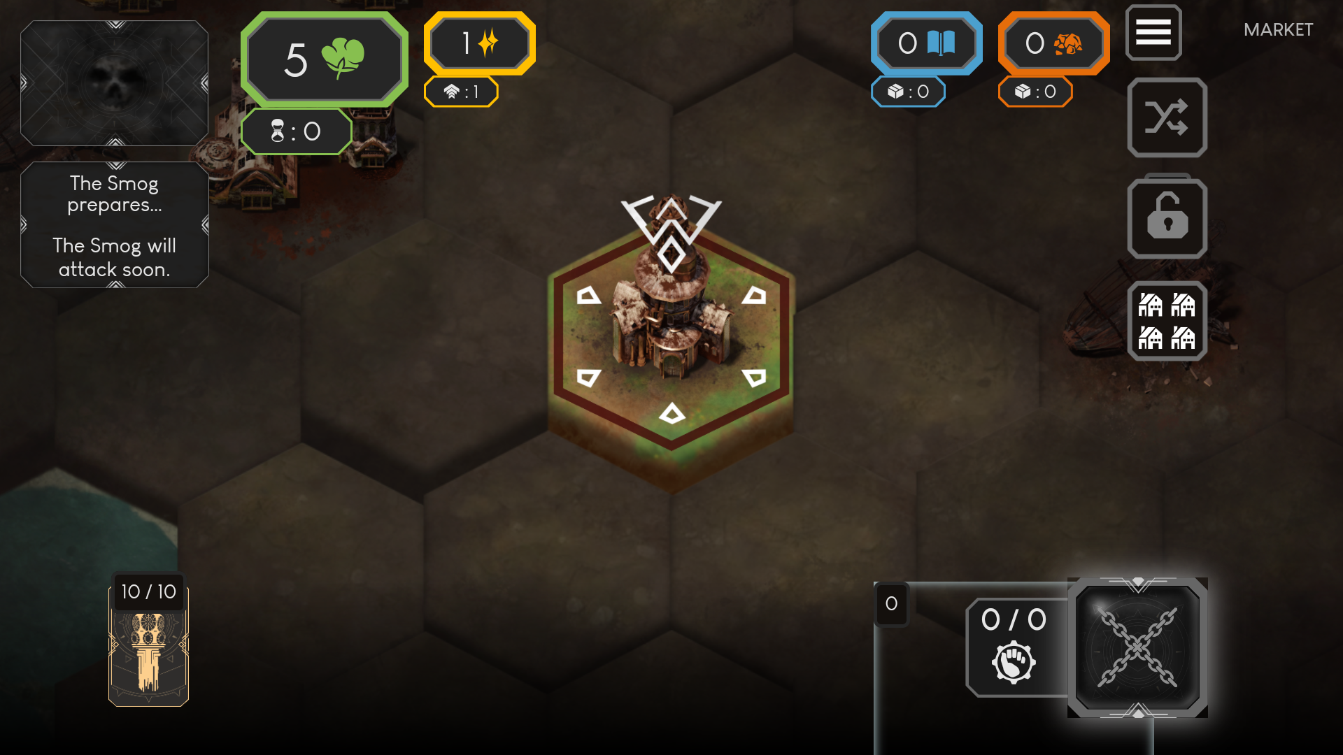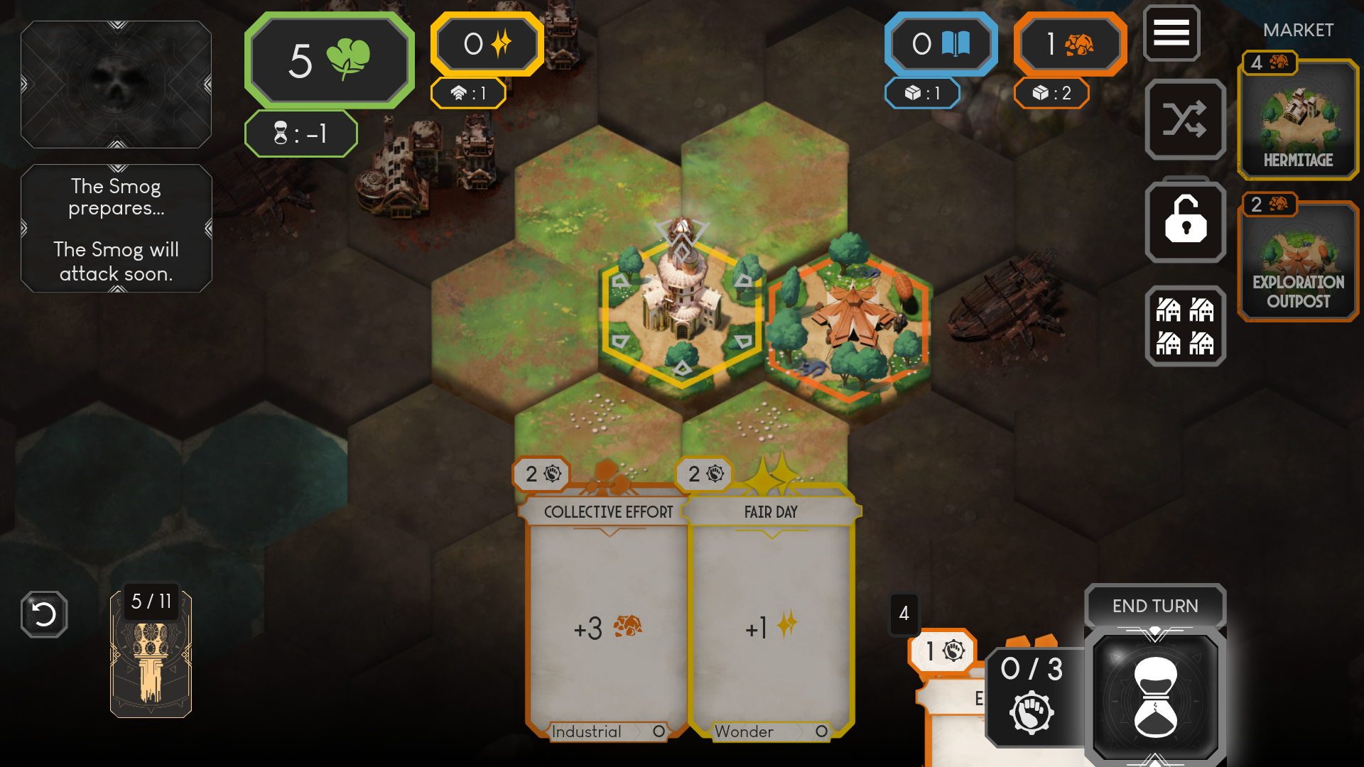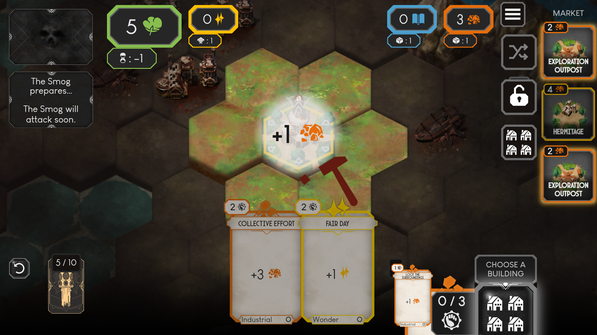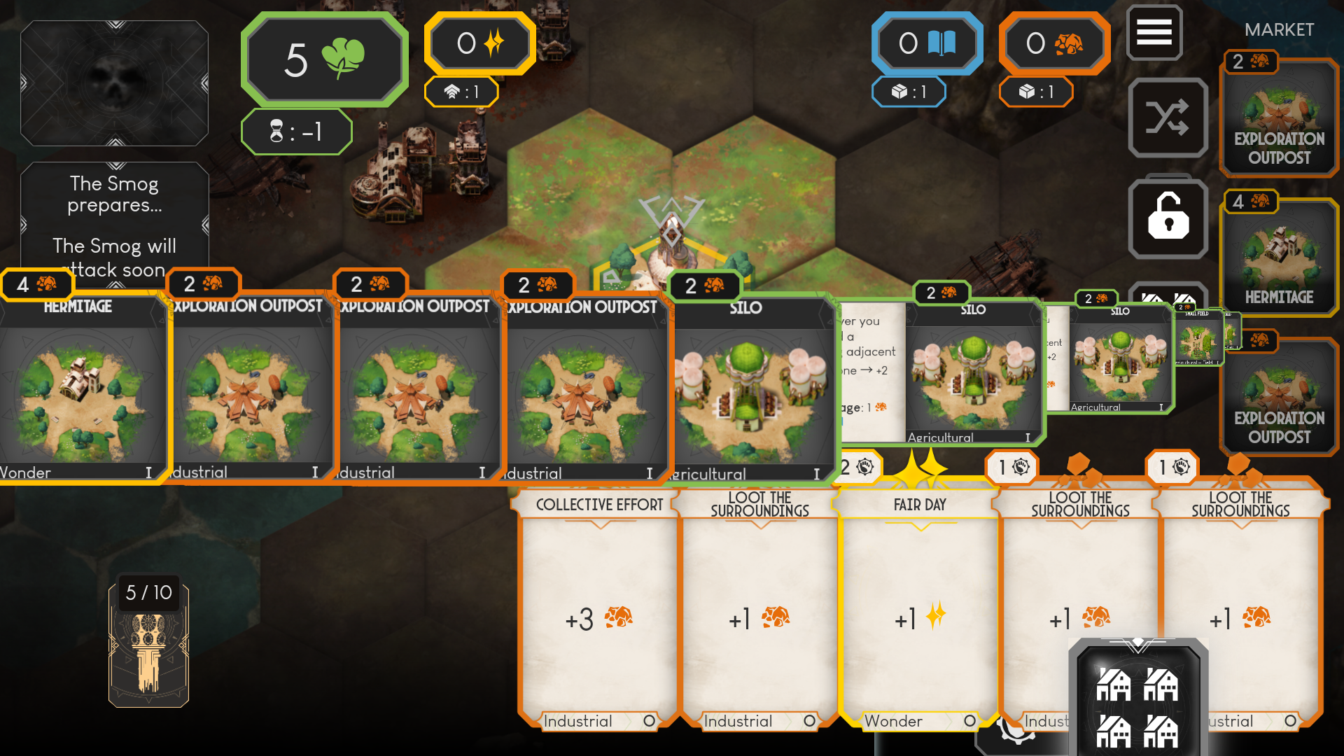 4、不断建造新的建筑生产更多的卡牌,加速城市的发展。