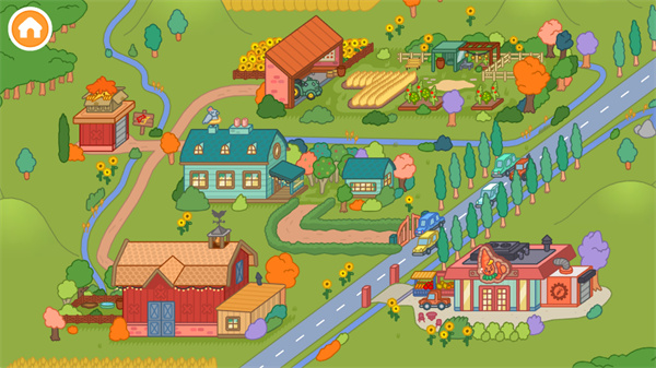 1、农场世界:游戏构建了一个完整的乡村农场环境,包含畜棚、房屋、田地和商店四个核心区域,每个地点都承载着不同的农场生活场景与互动内容。