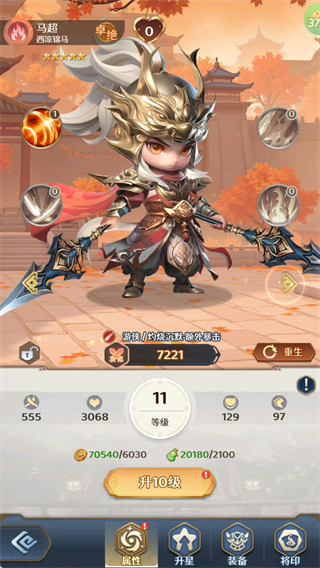 西凉锦马超,以勇武著称,游戏中是高机动的输出型武将。